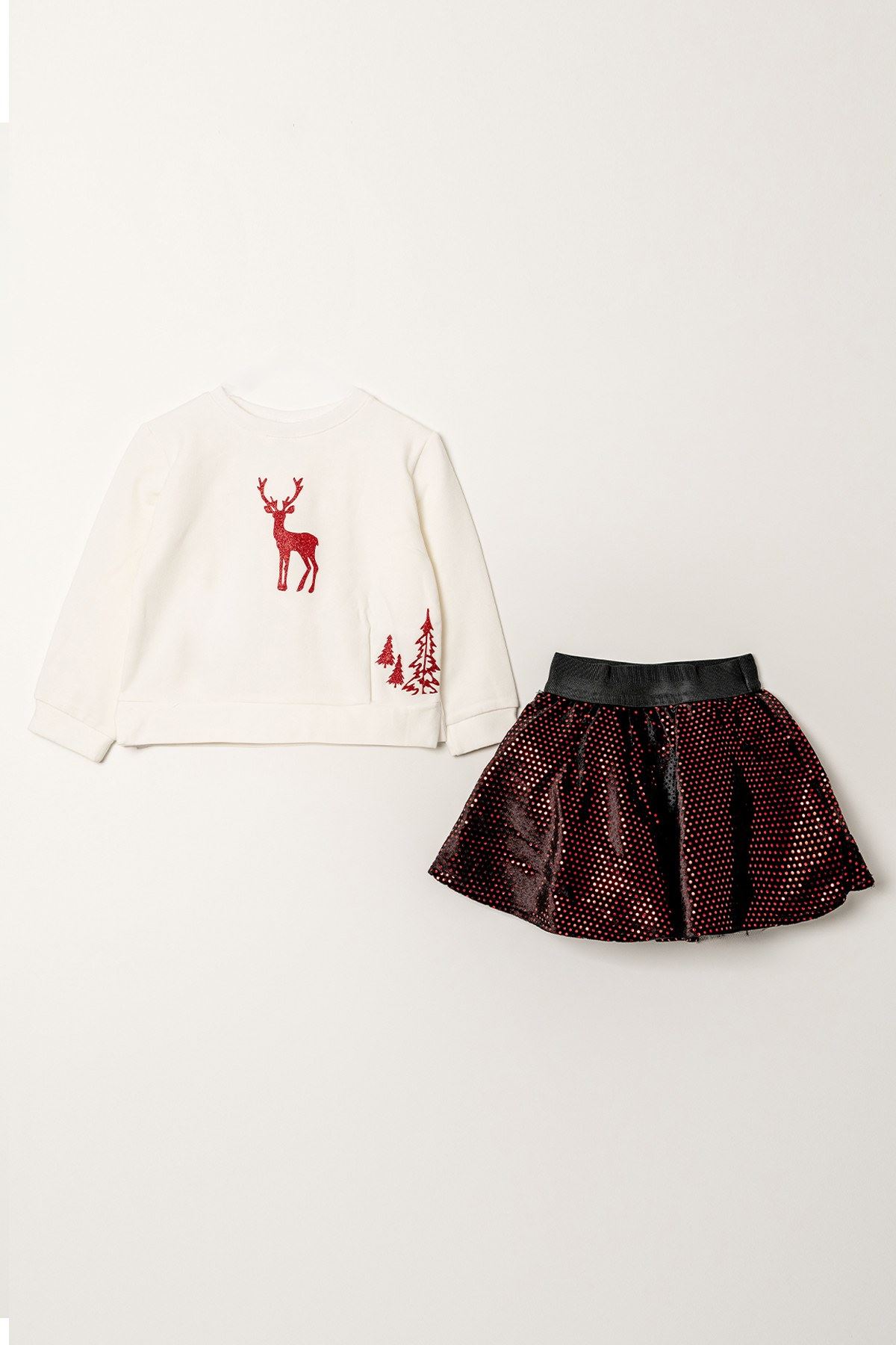 Ürün Açıklaması: Üst: Havalı Ve Sevimli Tasarım Özel Ayna Baskı Detaylı Yumuşacık Pamuk Penye Sweat Alt:Belden Lastikli İ.i Pamuk Astarlı Parıltılı Etek