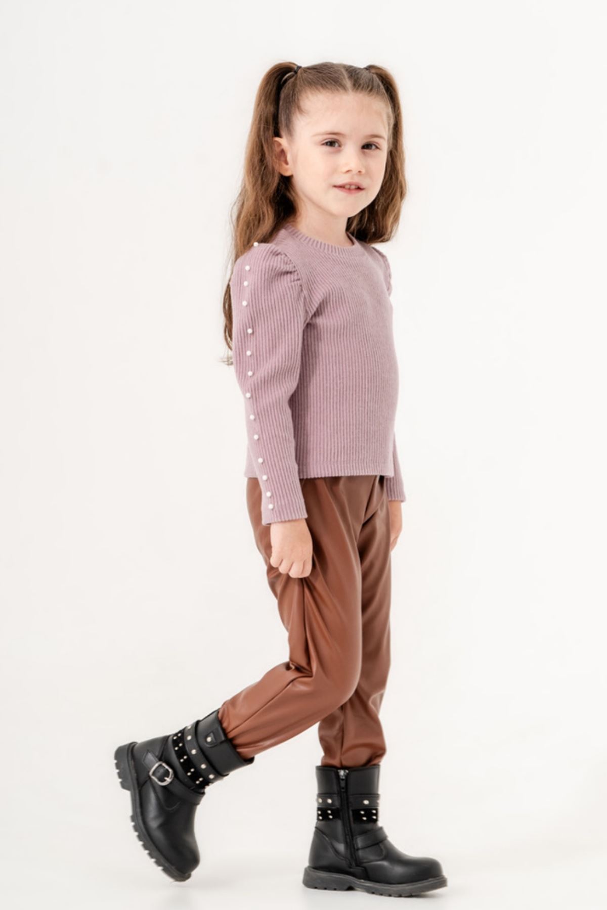 Ürün Açıklaması: Üst: Sevimli Tasarım Omuz Kol Detaylı Yumuşacık Likralı Fitilli Badi/Sweat Alt: Belden Lastikli İçi Kadife Gibi Yumuşacık Deri Pantolon