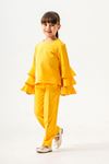 Ürün Açıklaması : Üst: Havalı Tasarım Fırfır Kol Detaylı Yumuşacık Efil Efil Tasarım Bluz Alt: Belden Lastikli Özel Kesim Yumuşacık Efil Eil Pantolon
