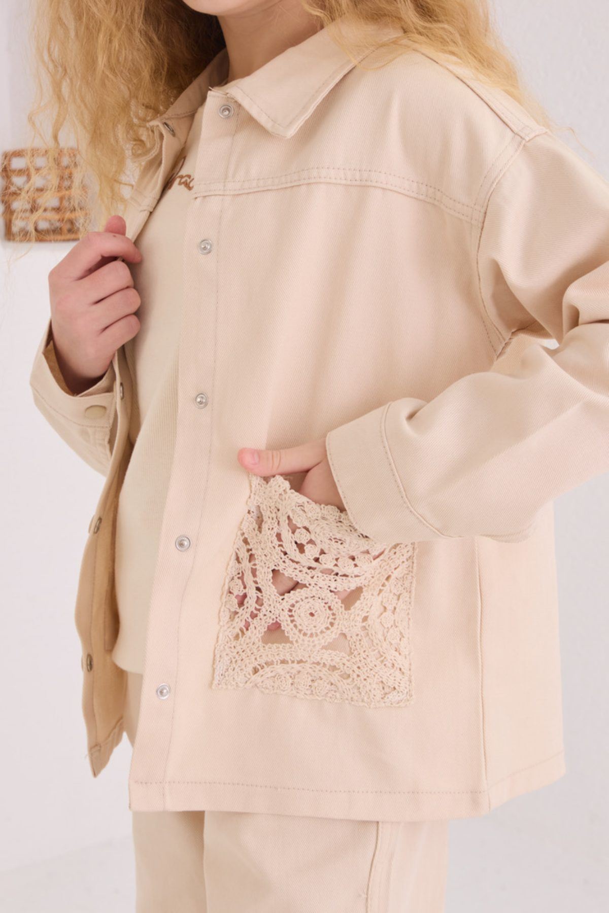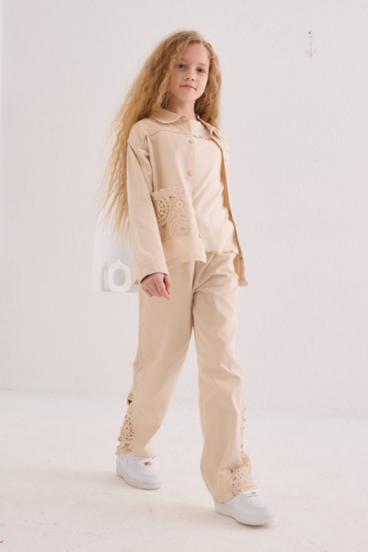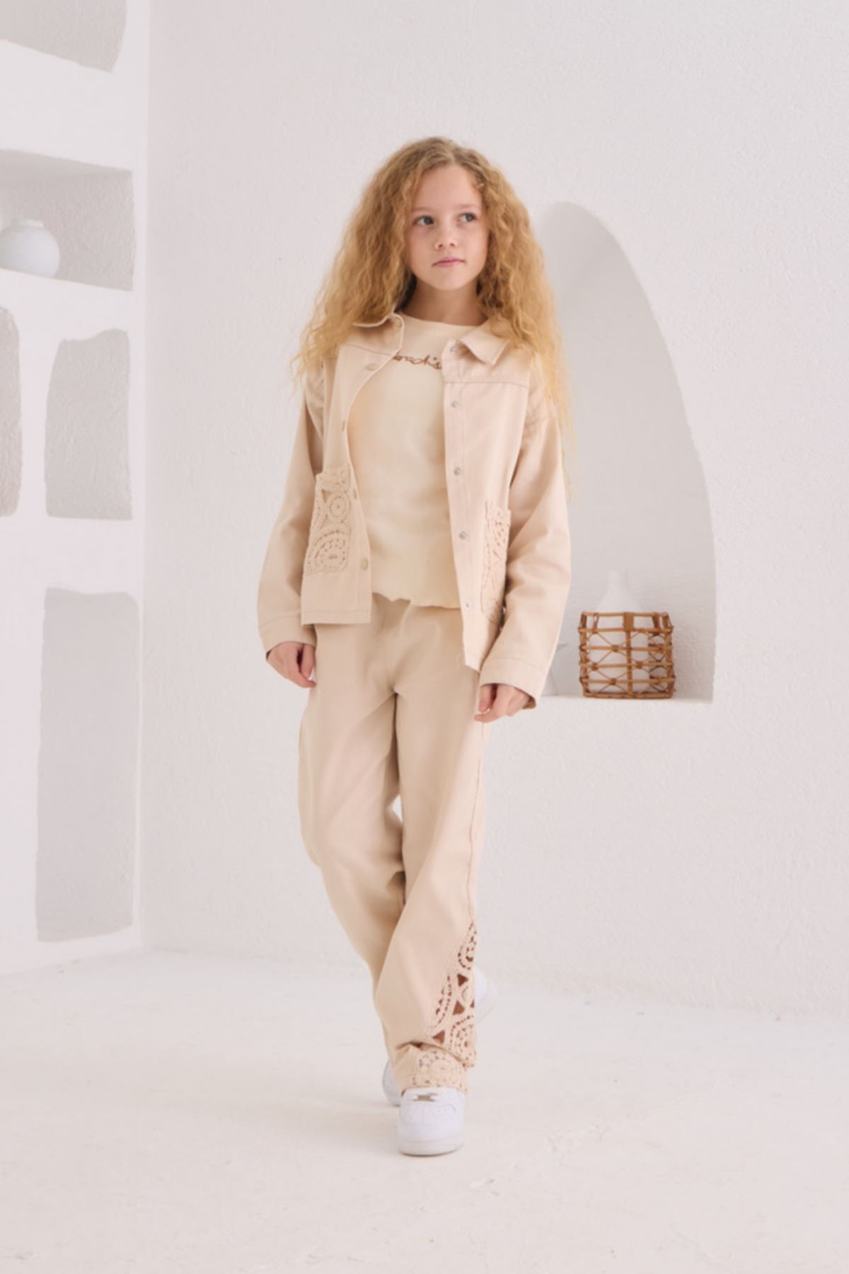 Ürün Açıklaması: Üst: Havalı Tasarım Nakış İşleme Detaylı Yumuşacık Pamuk Penye T-Shırt Ceket: Havalı Güpür Detaylı Yumuşacık SAF Pamuk Keten Tasarım Ceket Alt:Belden Lastikli Özel Kesim Ve Dikim Havalı Tasarım Güpür Paça Detaylı Yumuşacık SAF Pamuk Keten Tasarım Pantolon