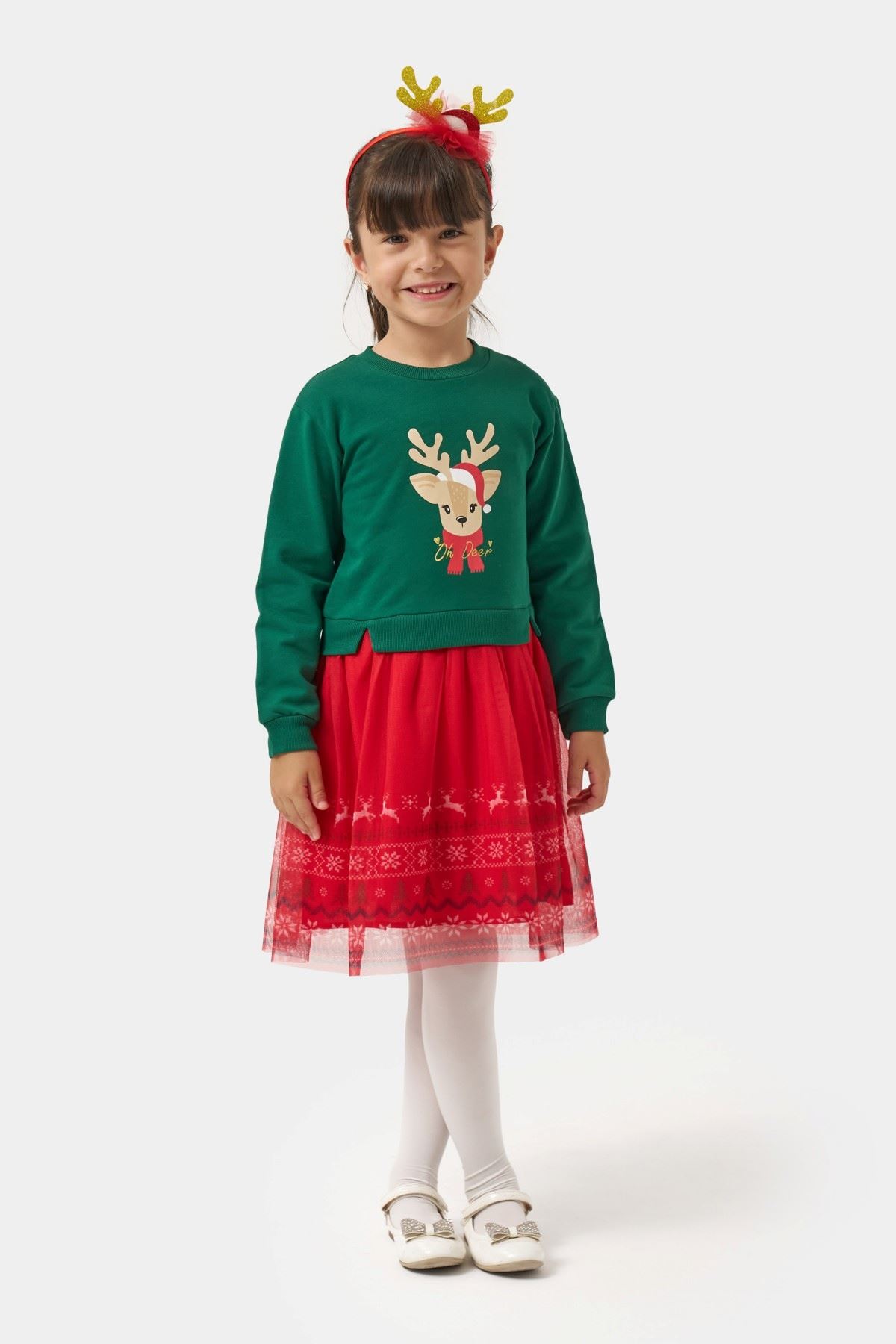 4-7 Yaş Ho Deer Kız Çocuk Elbise-Yeşil