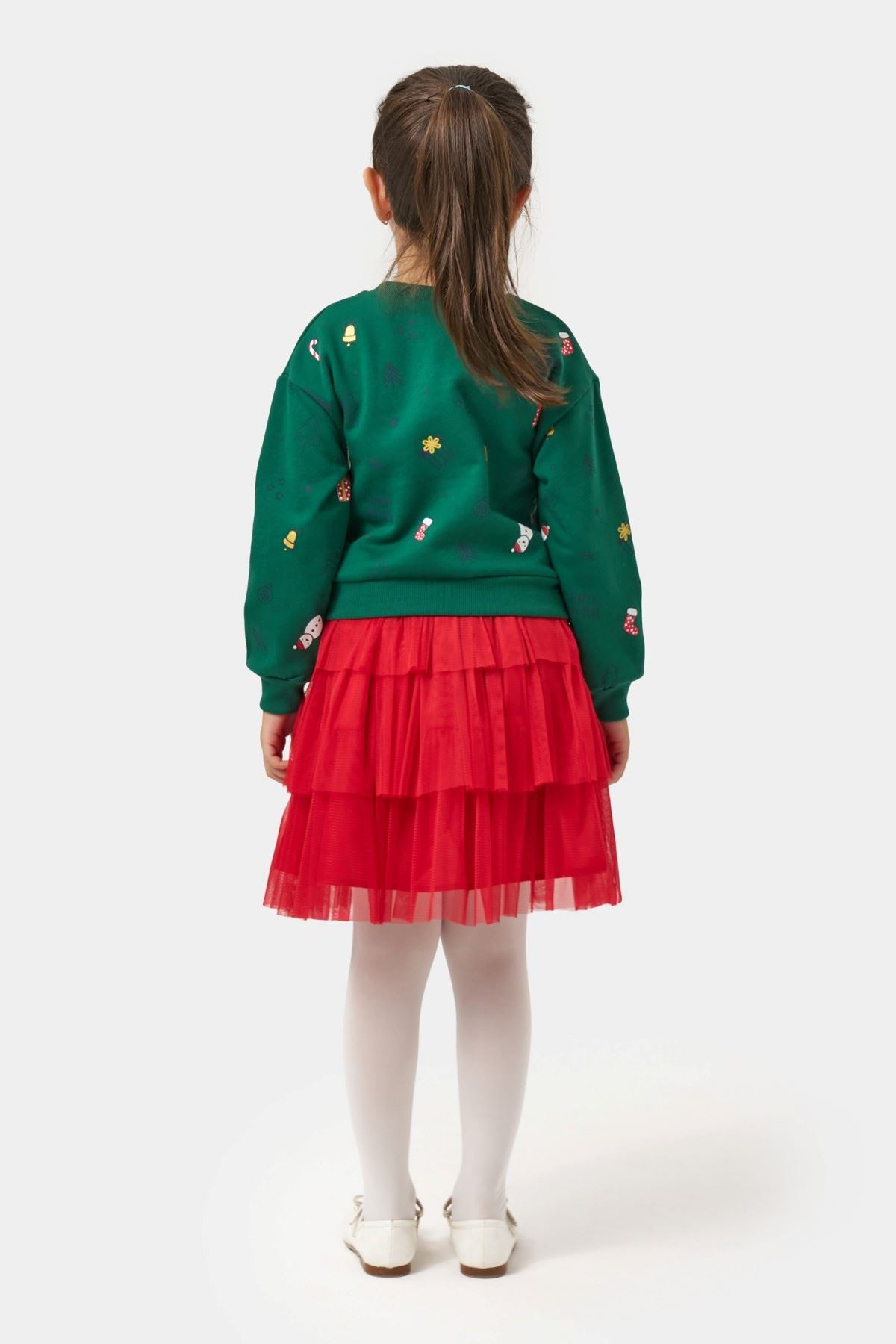 Ürün Açıklaması: Sevimli Yılbaşı Konsept Temalı Kız Çocuk Etekli Takım