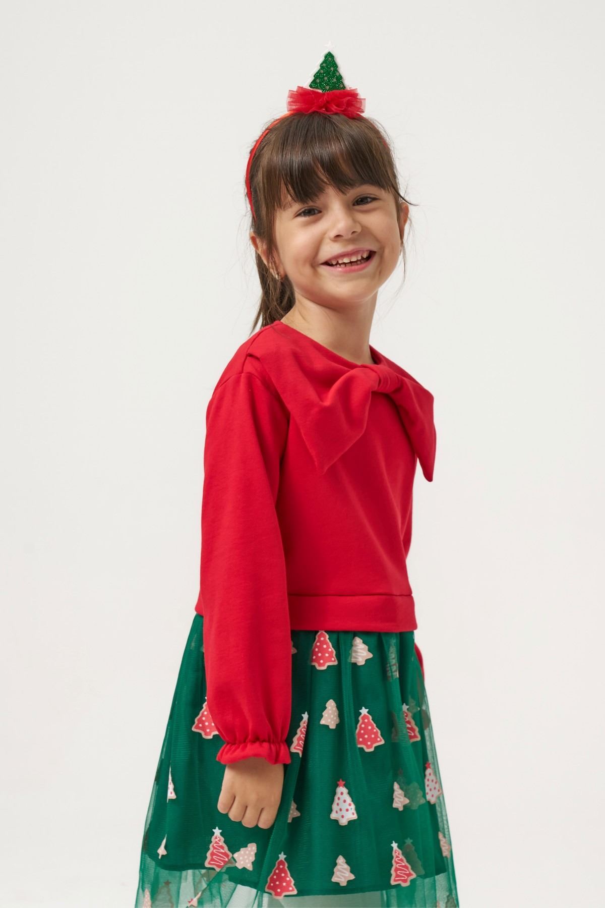 Ürün Açıklaması: Sevimli Yılbaşı Konsept Temalı Kız Çocuk Elbise Ve Saç Tokası