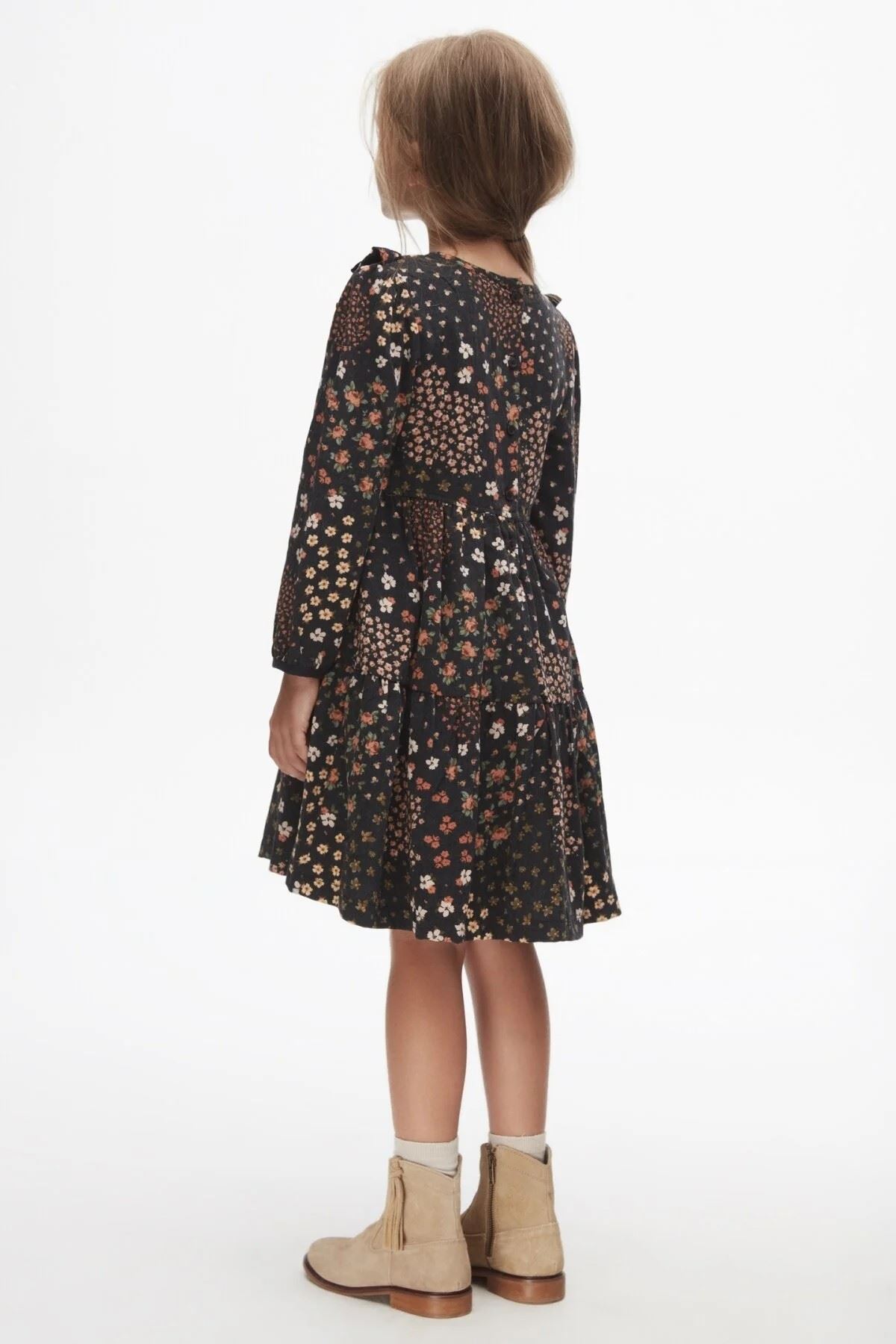4-8 Yaş Rana Premium Flowers Kız Çocuk Elbise-Antrasit-