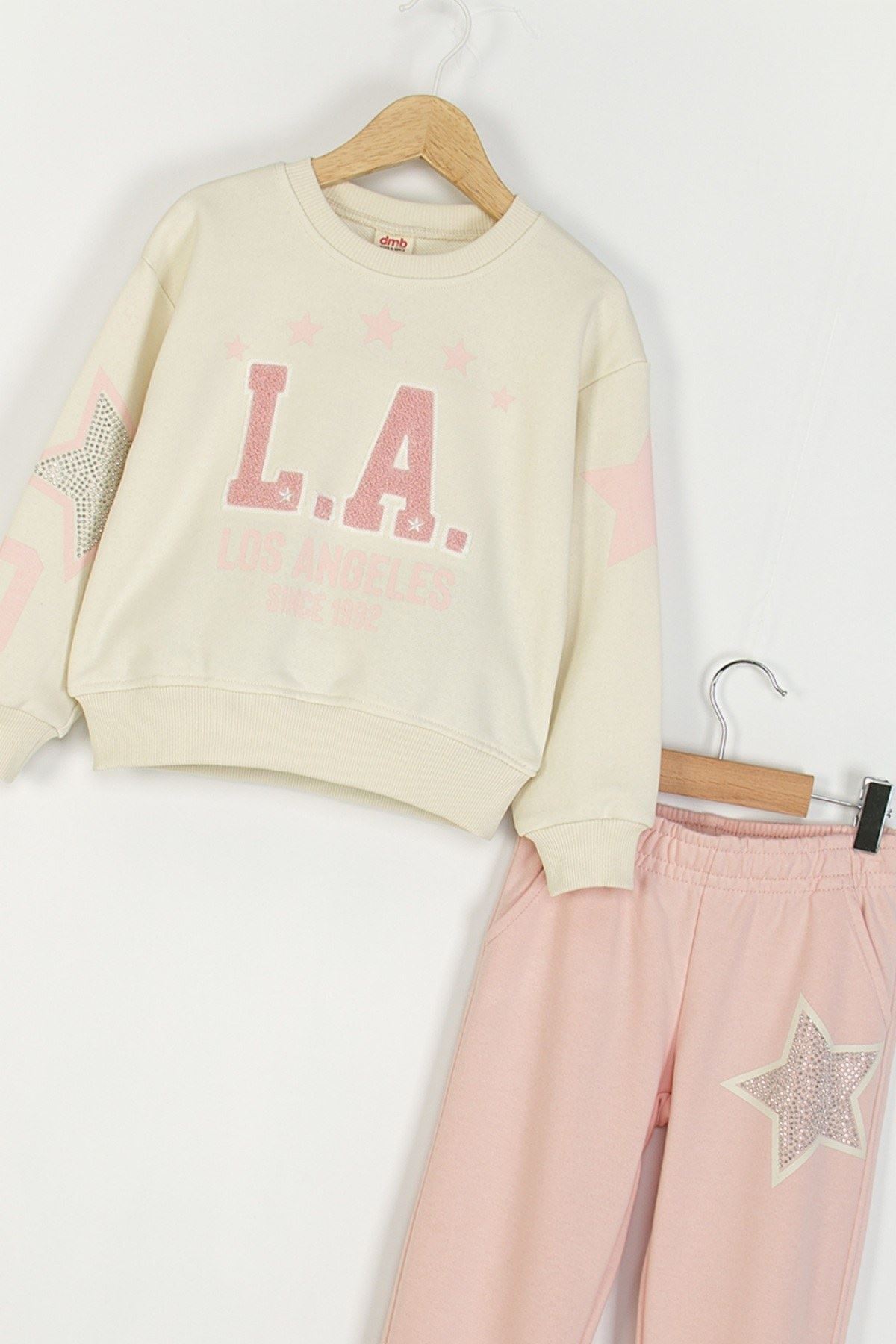 Ürün Açıklaması: Üst: Havalı Şerit Nakış İşleme Detaylı Yumuşacık Pamuk Penye Sweat Alt: Belden Lastikli Özel Tasarım Nakış İşleme Detaylı Yumuşacık Pamuk Penye Pantolon