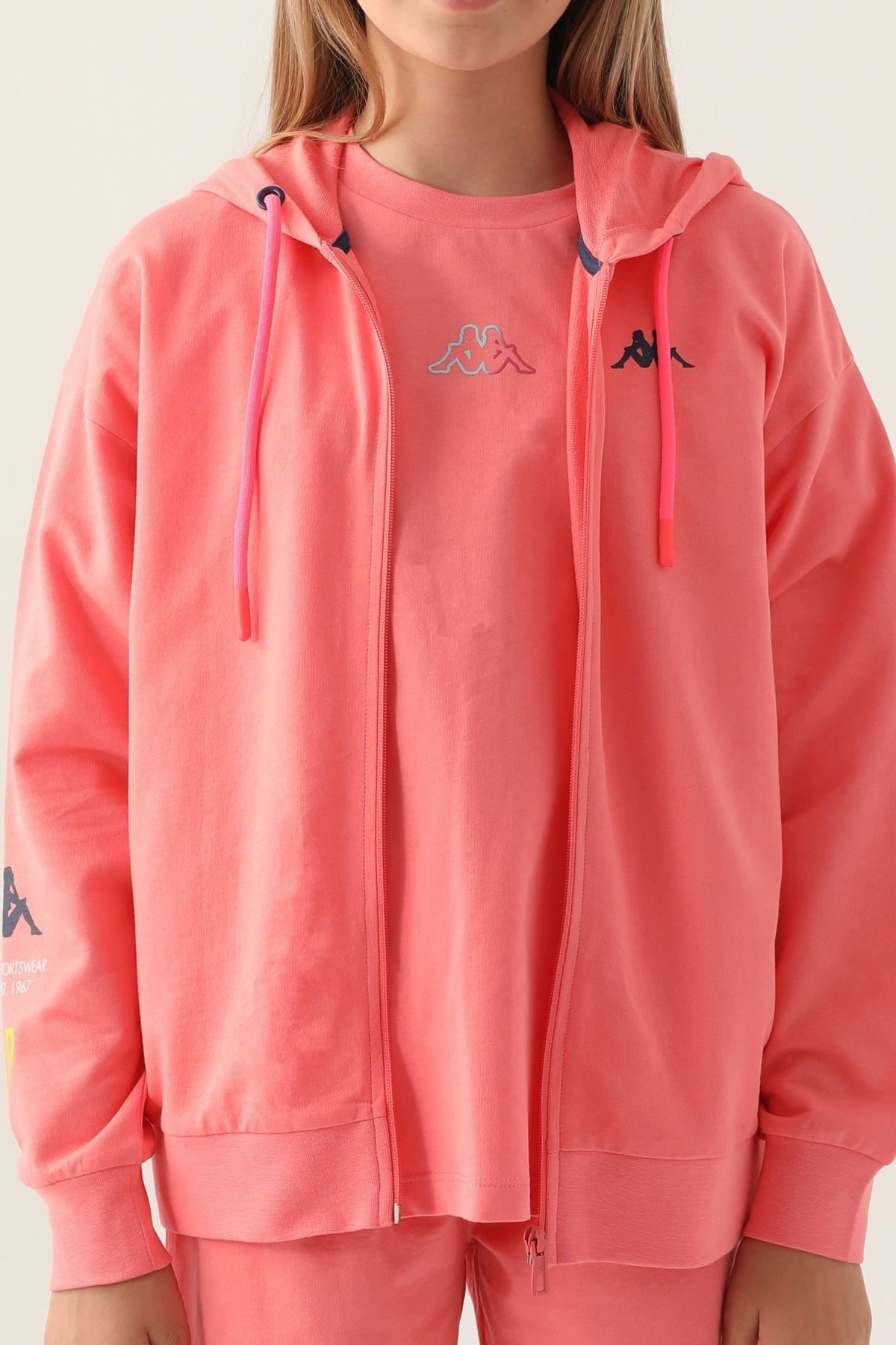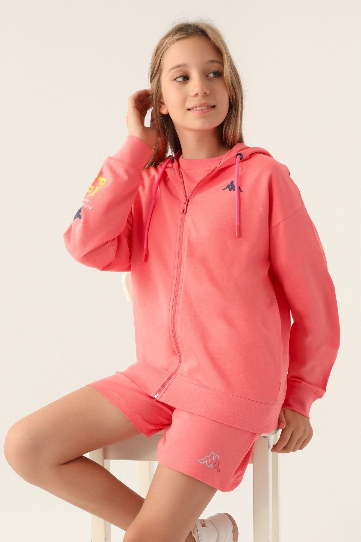 5-16 Yaş Lisanslı KAPPA Kız Çocuk Hırka Ceket-Nar çiçeği