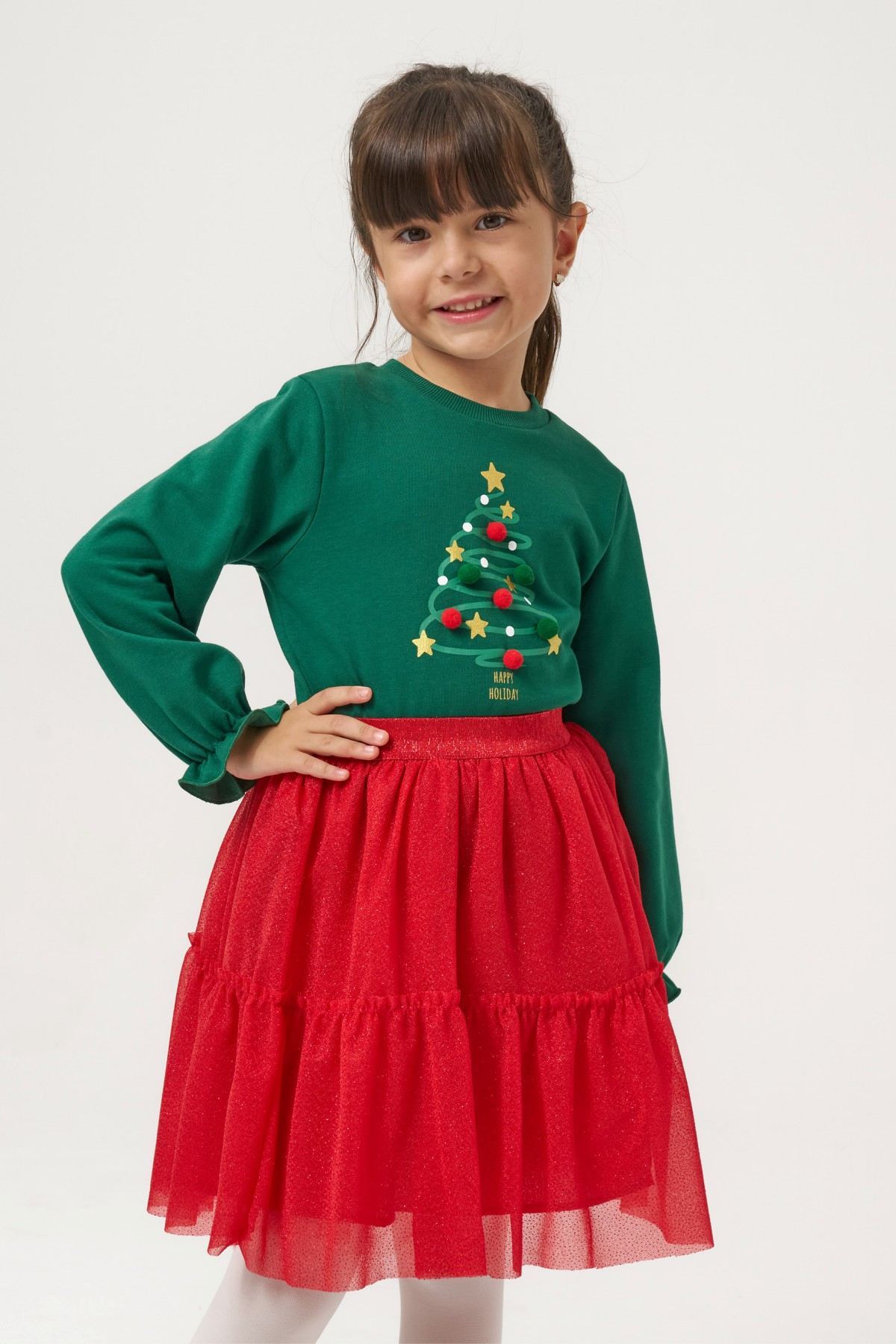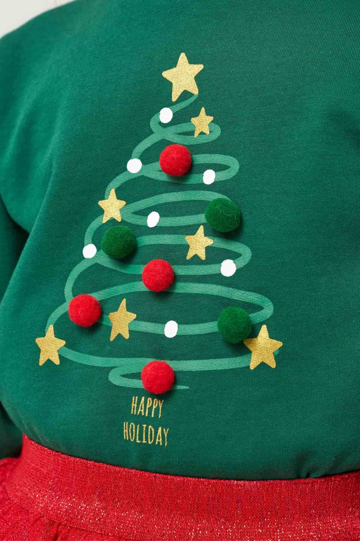 Ürün Açıklaması: Sevimli Yılbaşı Konsept Temalı Kız Çocuk Etekli Takım
