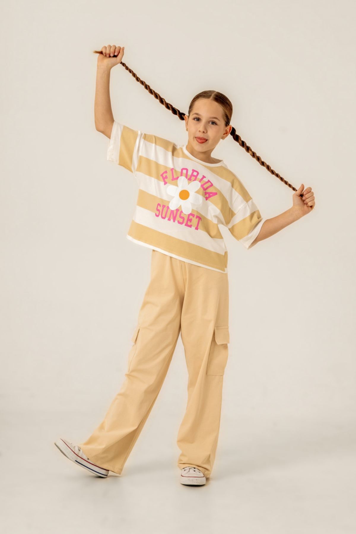 Ürün Açıklaması : Üst: Havalı Baskı Ve Model Detaylı Yumuşacık Full Likralı Pamuk Penye T-Shırt Alt:Belden Lastikli Havalı Kargo Cep Detaylı Yumuşacık Pamuk Penye Pantolon