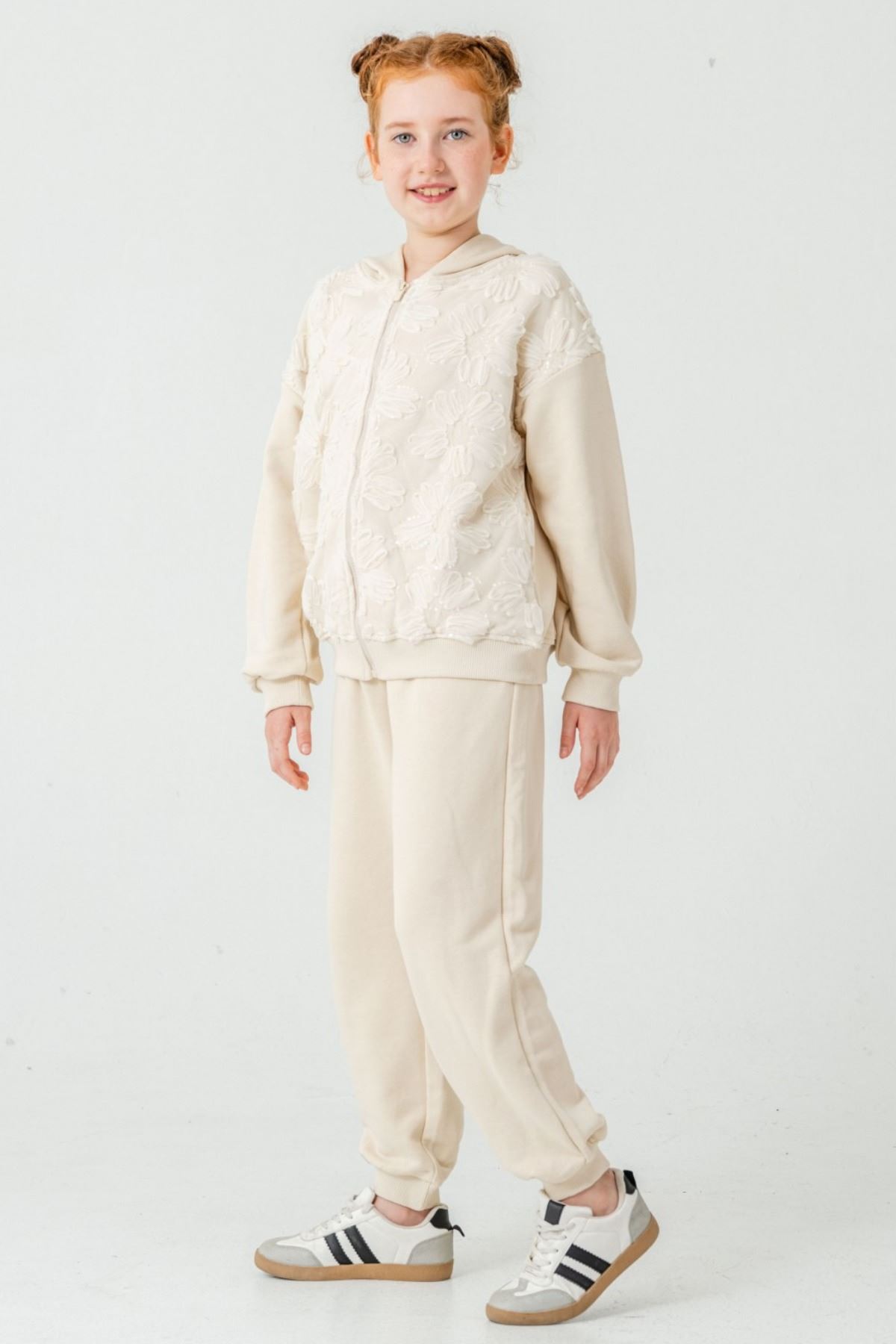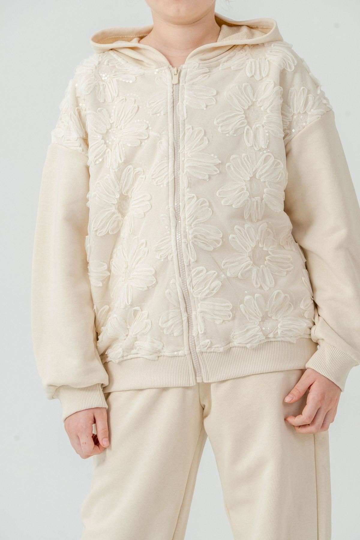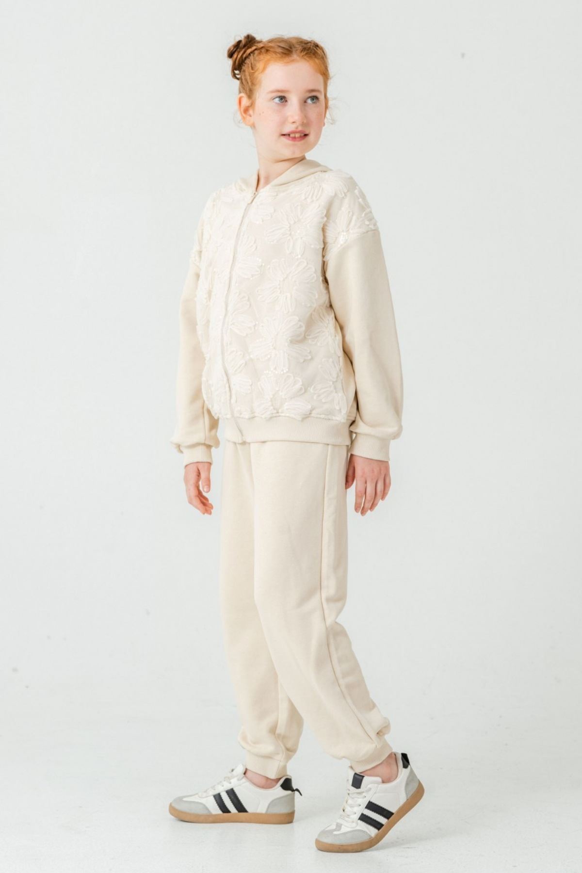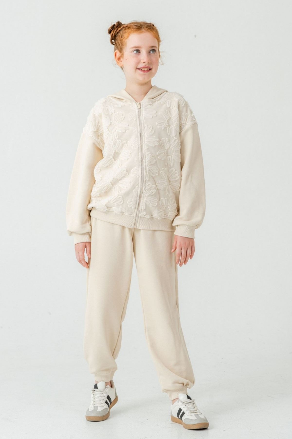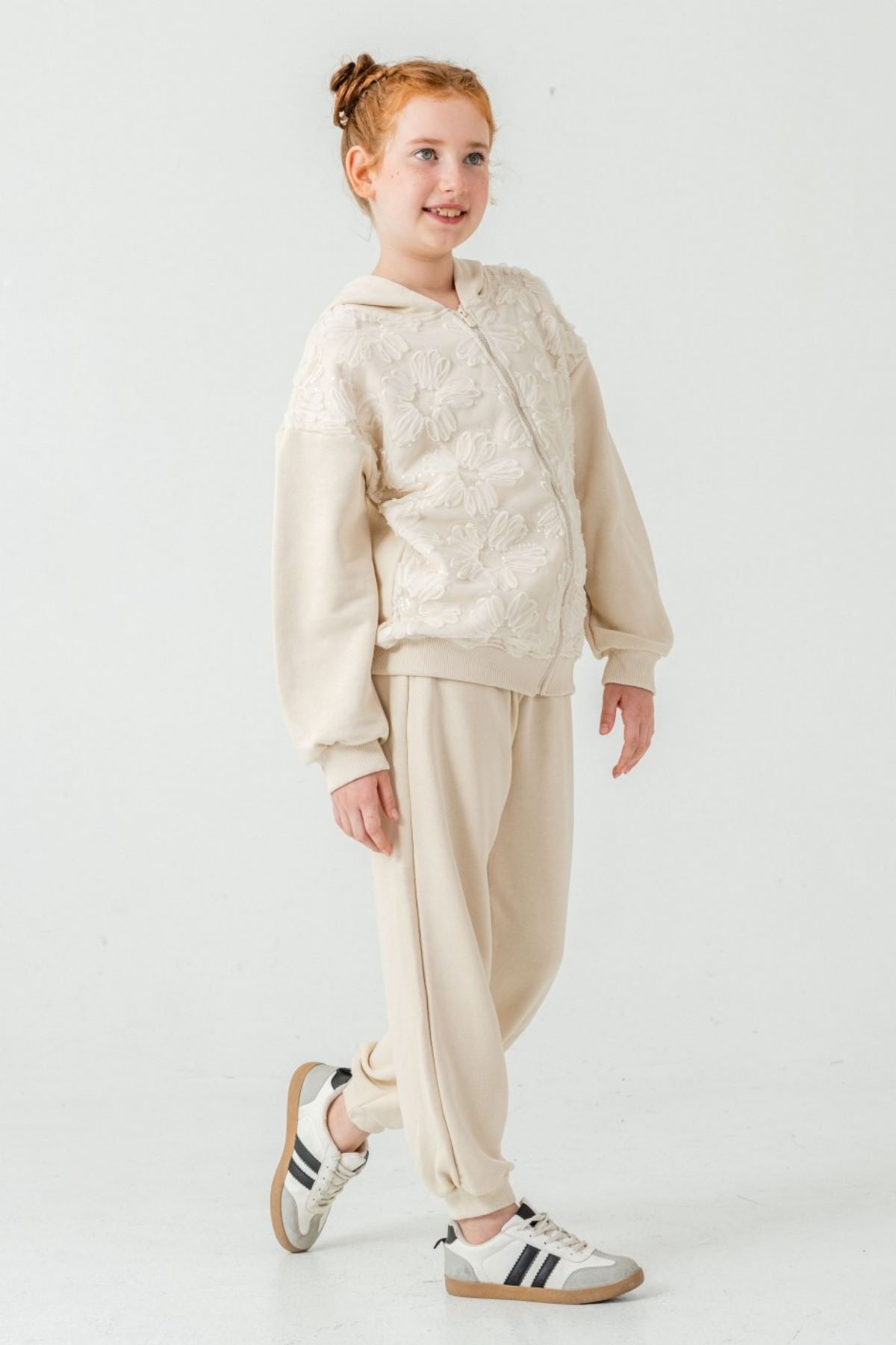 Ürün Açıklaması: Üst: Önü Havalı Papatya İşlemeli Tasarım Detaylı Yumuşacık Terletmez Fırçalı Pamuk Penye Kapüşonlu Ceket Alt: Belden Lastikli Havalı Yumuşacık Pamuk Penye Pantolon