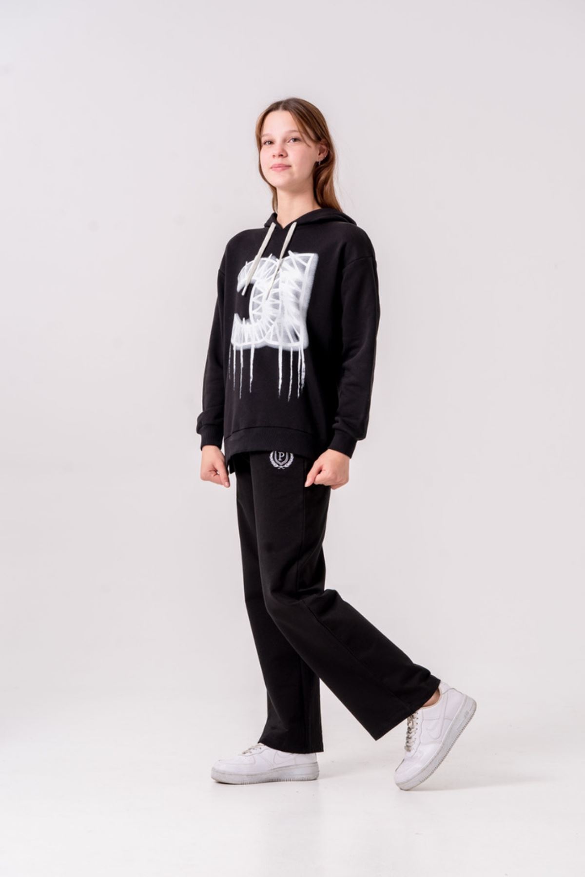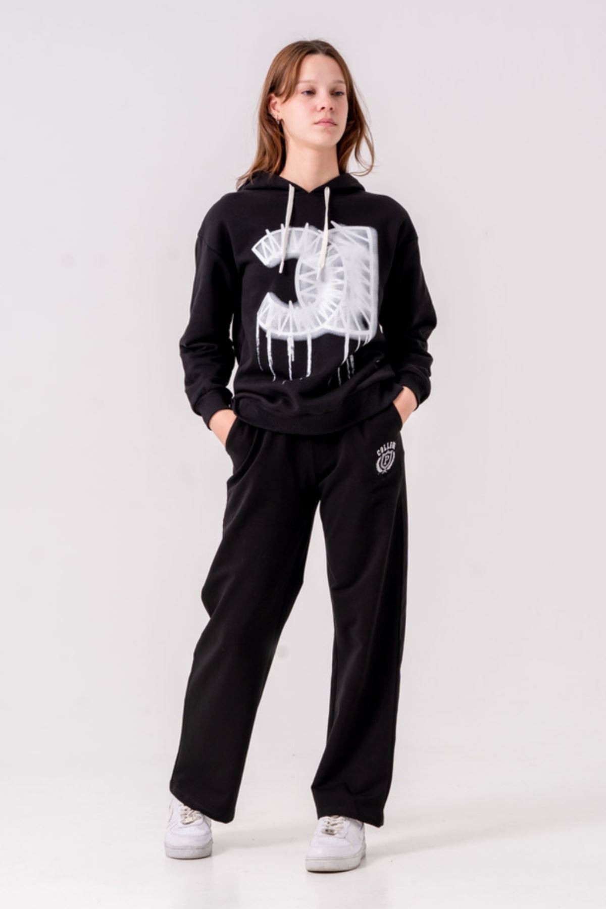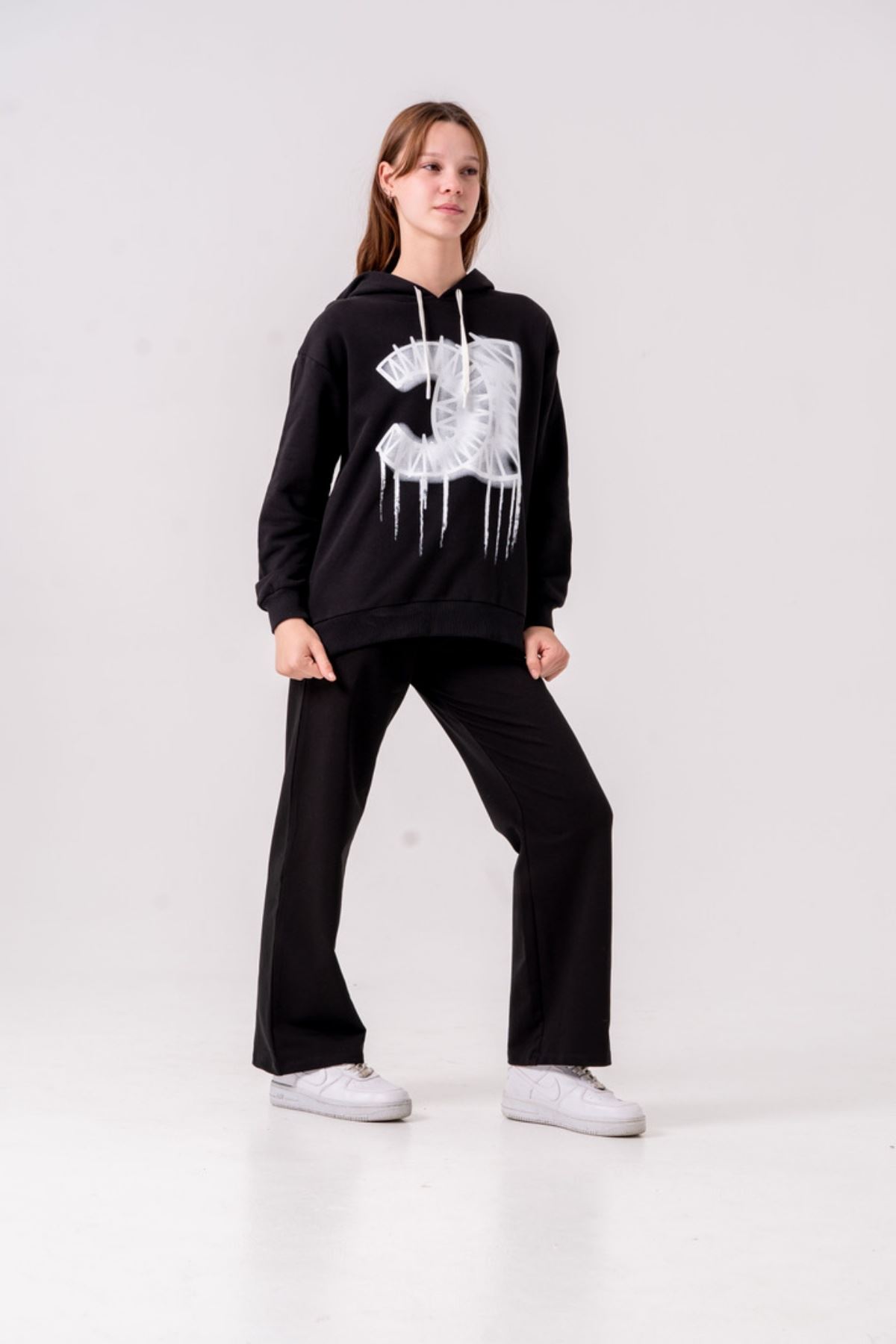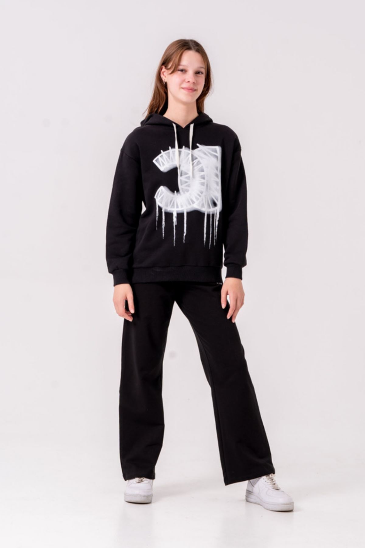 Ürün Açıklaması: Üst: Havalı Baskı Detaylı Yumuşacık Likralı Pamuk Penye Kapüşonlu Sweatshırt Alt: Belden Lastikli Yumuşacık Pamuk Penye Pantolon