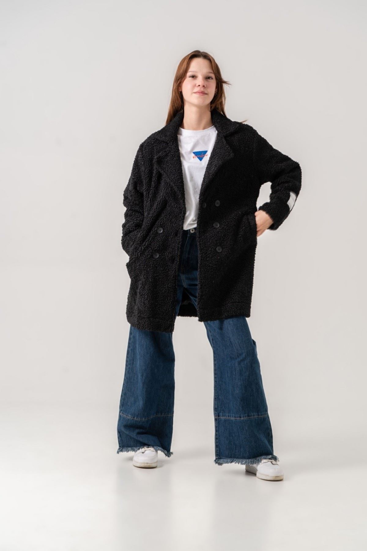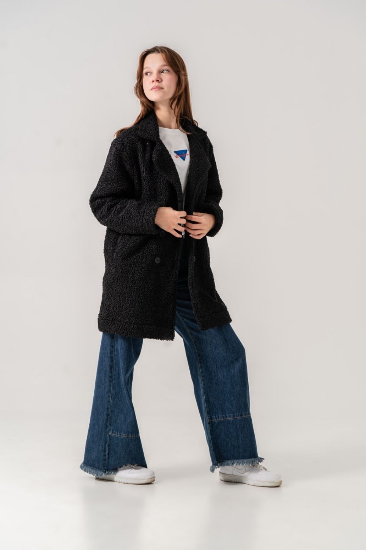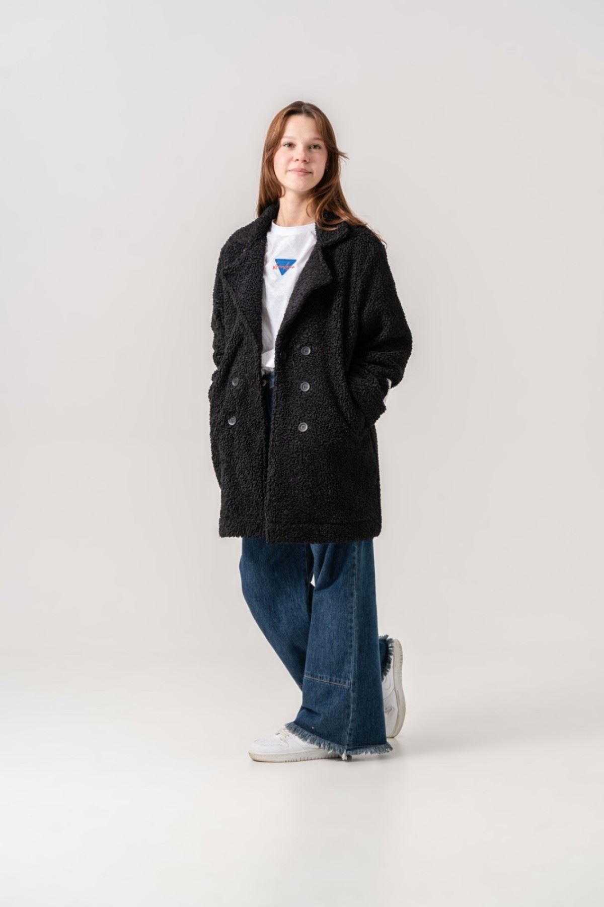 8-15 Yaş Lovobery Monaco Kız Çocuk Kaban -Siyah