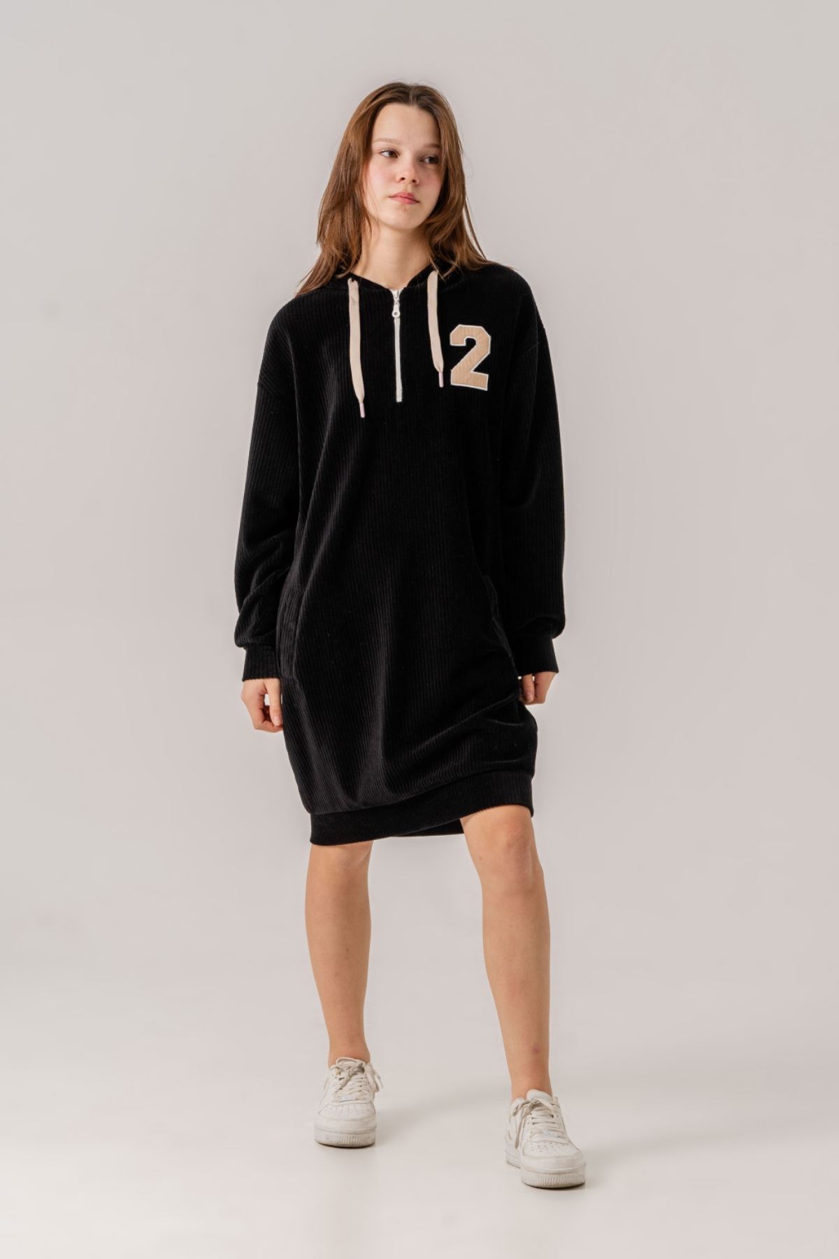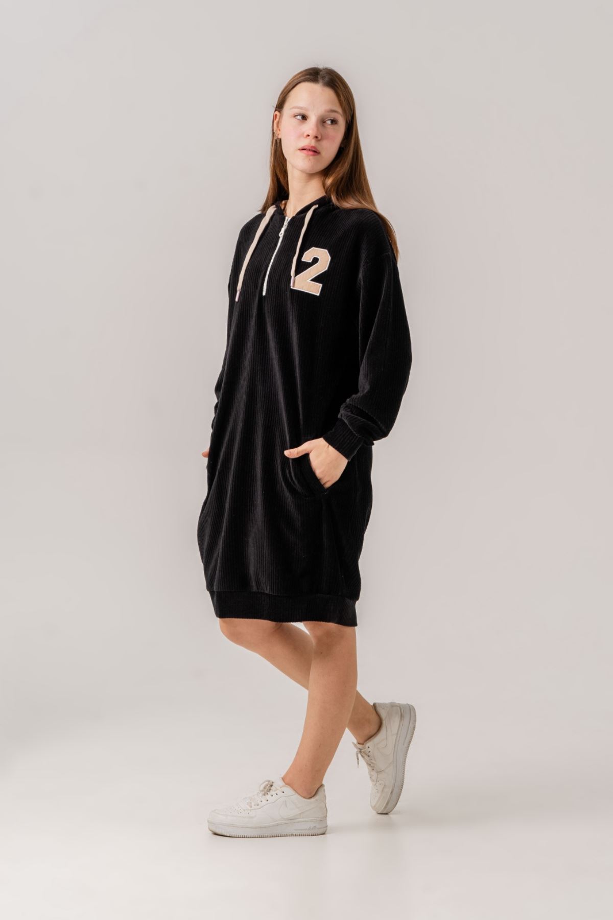 Ürün Açıklaması: Özel Nakış Ve Havalı Fermuar Detaylı Kapüşonlu Yumuşacık Tasarım Elbise