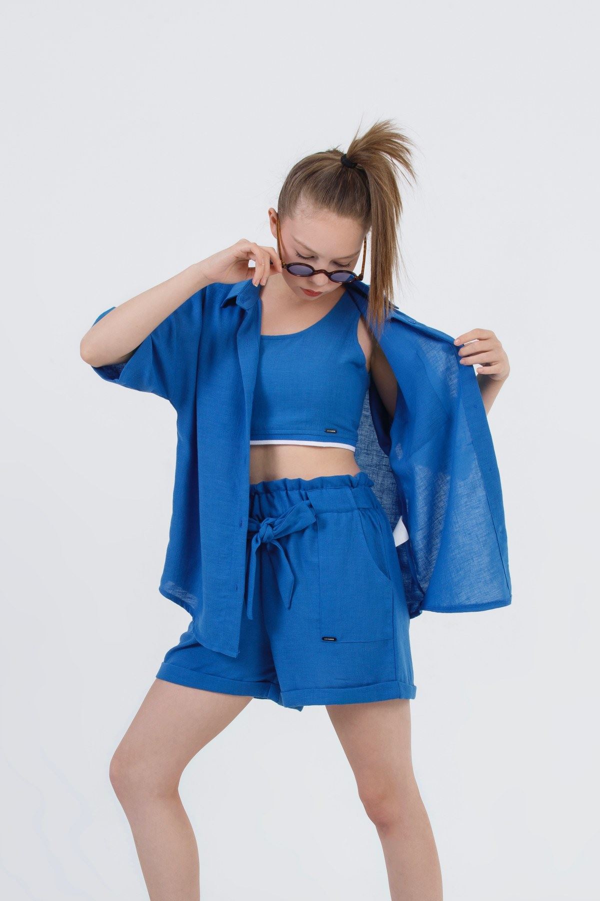 Ürün Açıklaması: Yumuşacık Şerit Lastik Detaylı Crop , Cepli Yumuşacık Tiril Tiril Gömlek Alt: Belden Lastikli Tasarım Cep Detaylı Yumuşacık Tiril Tiril Şort