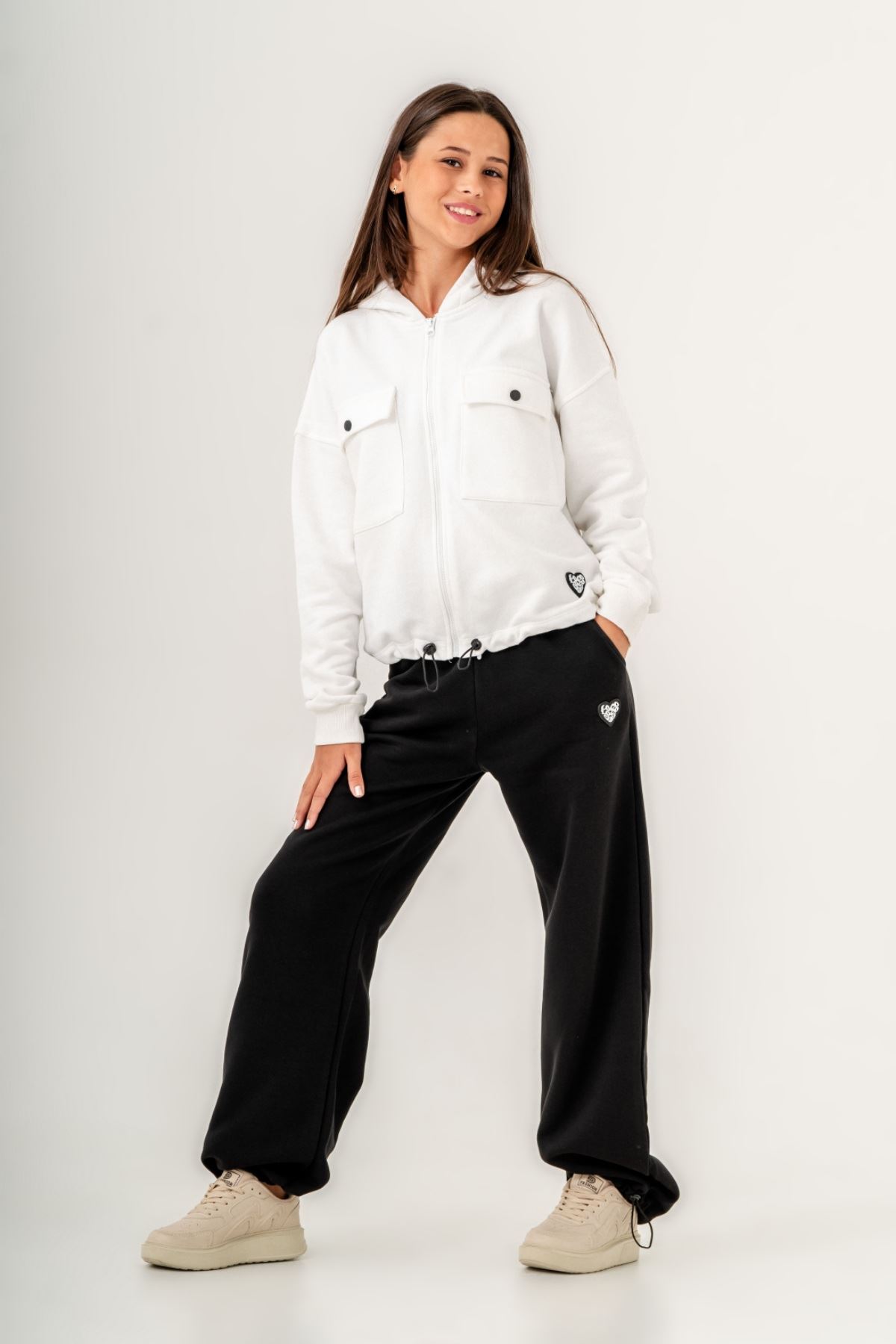 Ürün Açıklaması: Üst: Havalı Tasarım Cep Detaylı Yumuşacık Pamuk Penye Kapüşonlu Fermuarlı Tasarım Hırka Alt: Belden Lastikli Havalı Logo İşleme Detaylı Yumuşacık Pamuk Penye Tasarım Pantolon