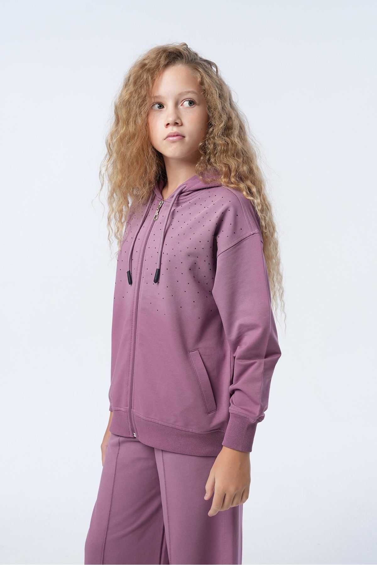 Ürün Açıklaması : Üst: Premium Kalite Havalı Taş Serpme Özel Tasarım İşçilikli Yumuşacık Pamuk Penye Kapüşonlu Fermuarlı Tasarım Hırka Alt: Belden Lastikli Havalı Kalıp Şerit Dikim Detaylı Yumuşacık Pamuk Penye Pantolon