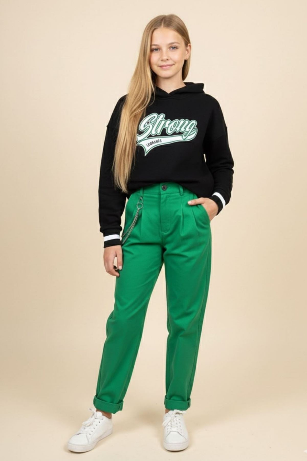 Ürün Açıklaması:  Üst: Havalı Nakış İşleme Ve Tasarım Detaylı Yumuşacık Likralı Pamuk Penye Kapüşonlu Sweatshırt Alt: Belden Lastikli Yumuşacık Pamuk Keten Pantolon