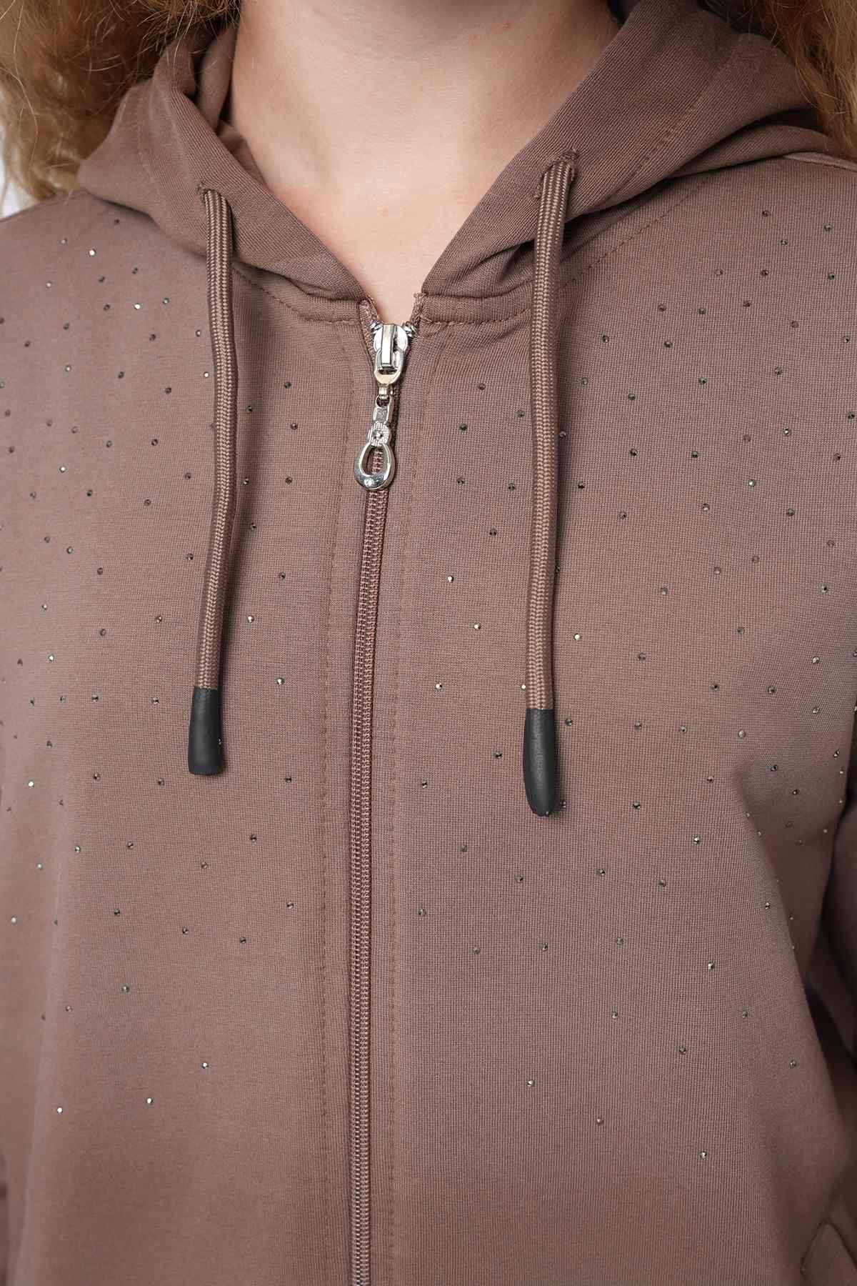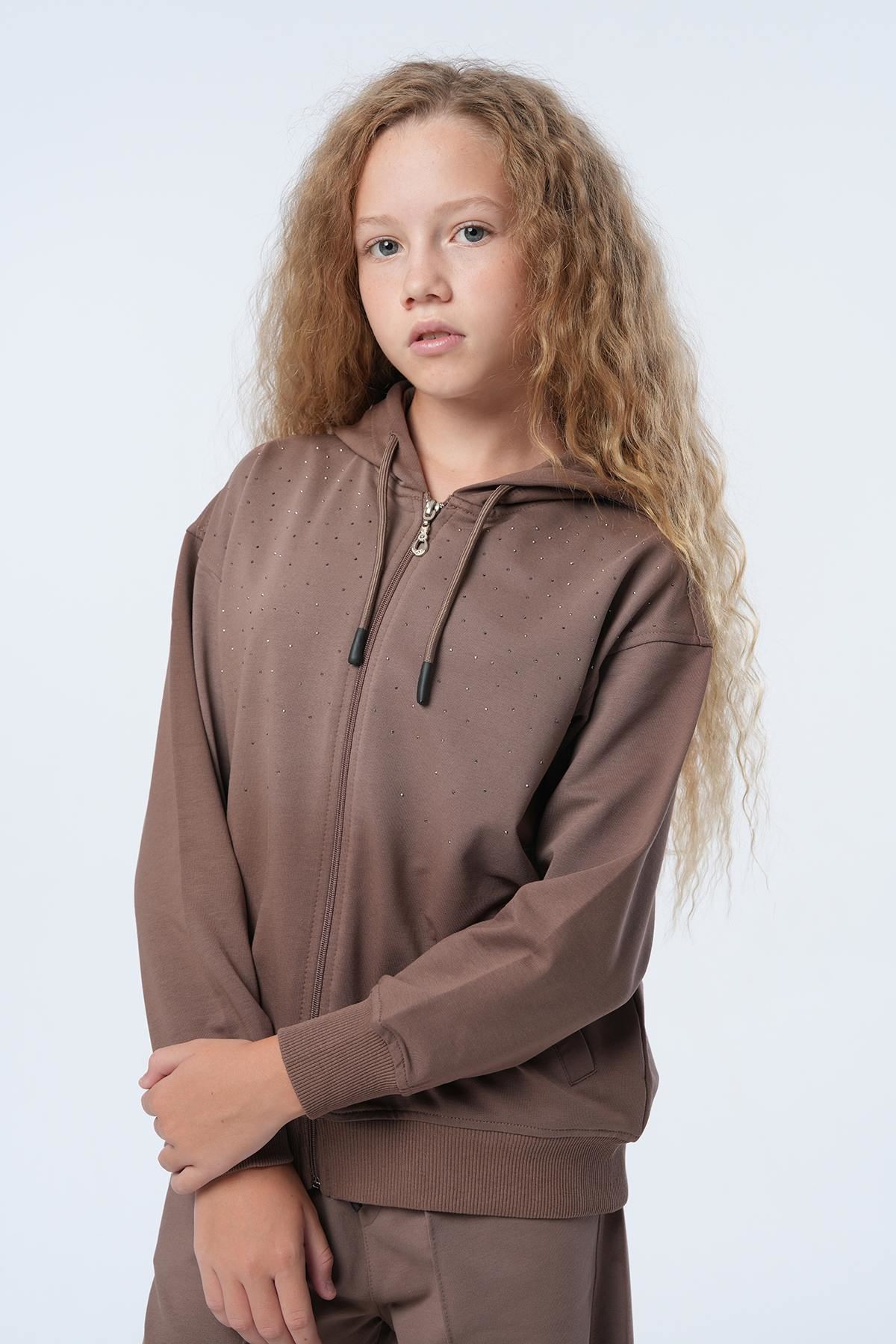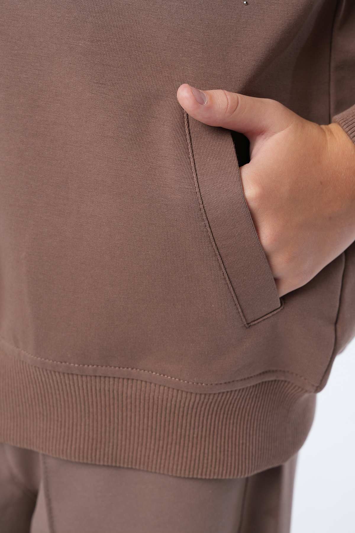 Ürün Açıklaması : Üst: Premium Kalite Havalı Taş Serpme Özel Tasarım İşçilikli Yumuşacık Pamuk Penye Kapüşonlu Fermuarlı Tasarım Hırka Alt: Belden Lastikli Havalı Kalıp Şerit Dikim Detaylı Yumuşacık Pamuk Penye Pantolon