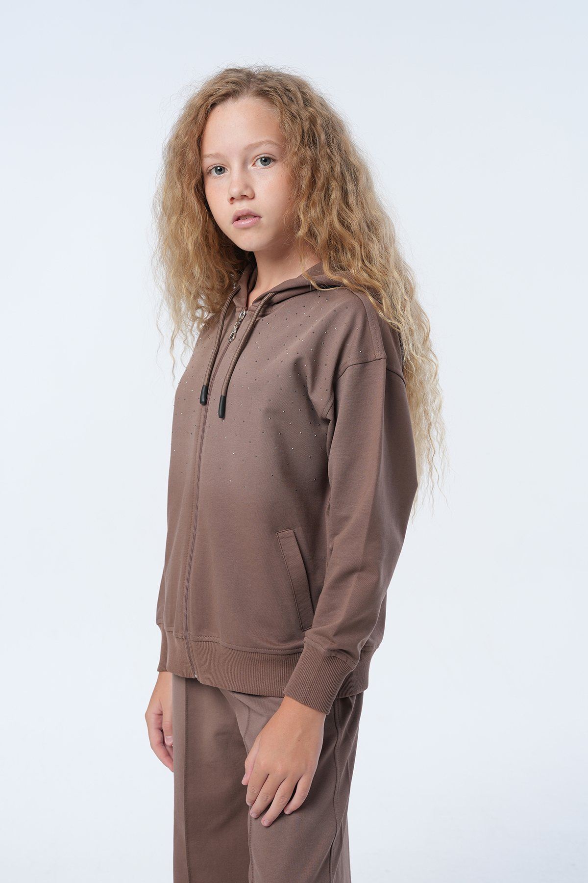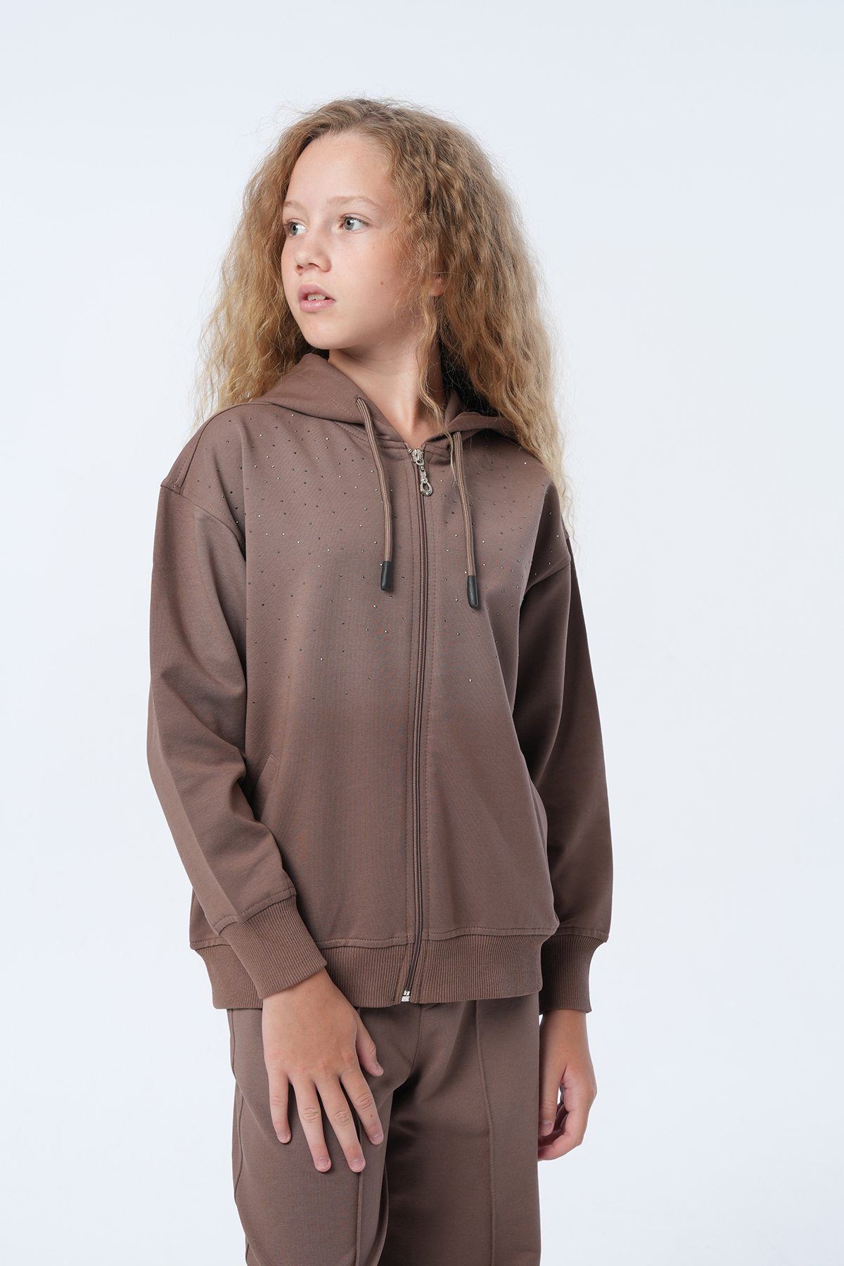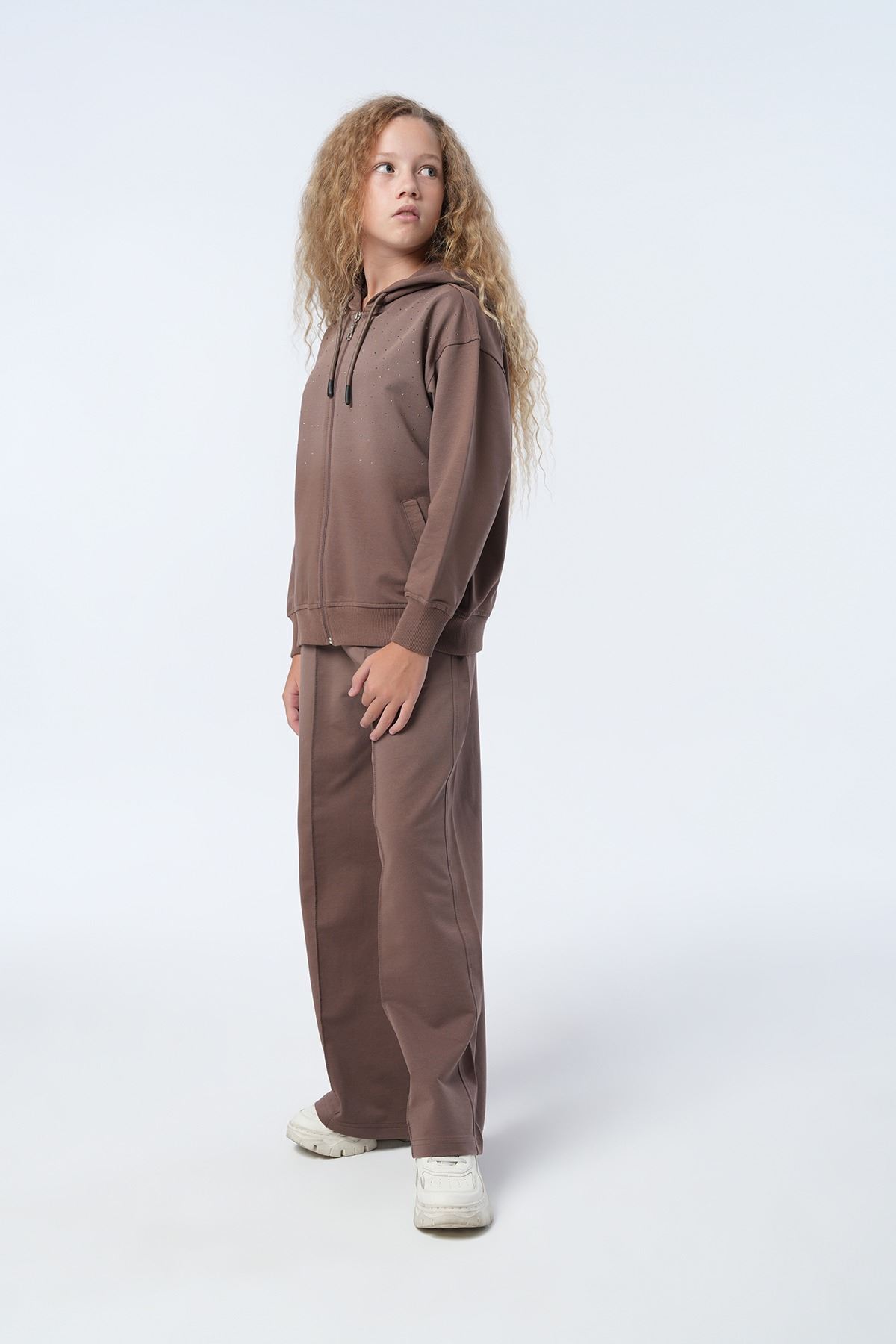 Ürün Açıklaması : Üst: Premium Kalite Havalı Taş Serpme Özel Tasarım İşçilikli Yumuşacık Pamuk Penye Kapüşonlu Fermuarlı Tasarım Hırka Alt: Belden Lastikli Havalı Kalıp Şerit Dikim Detaylı Yumuşacık Pamuk Penye Pantolon