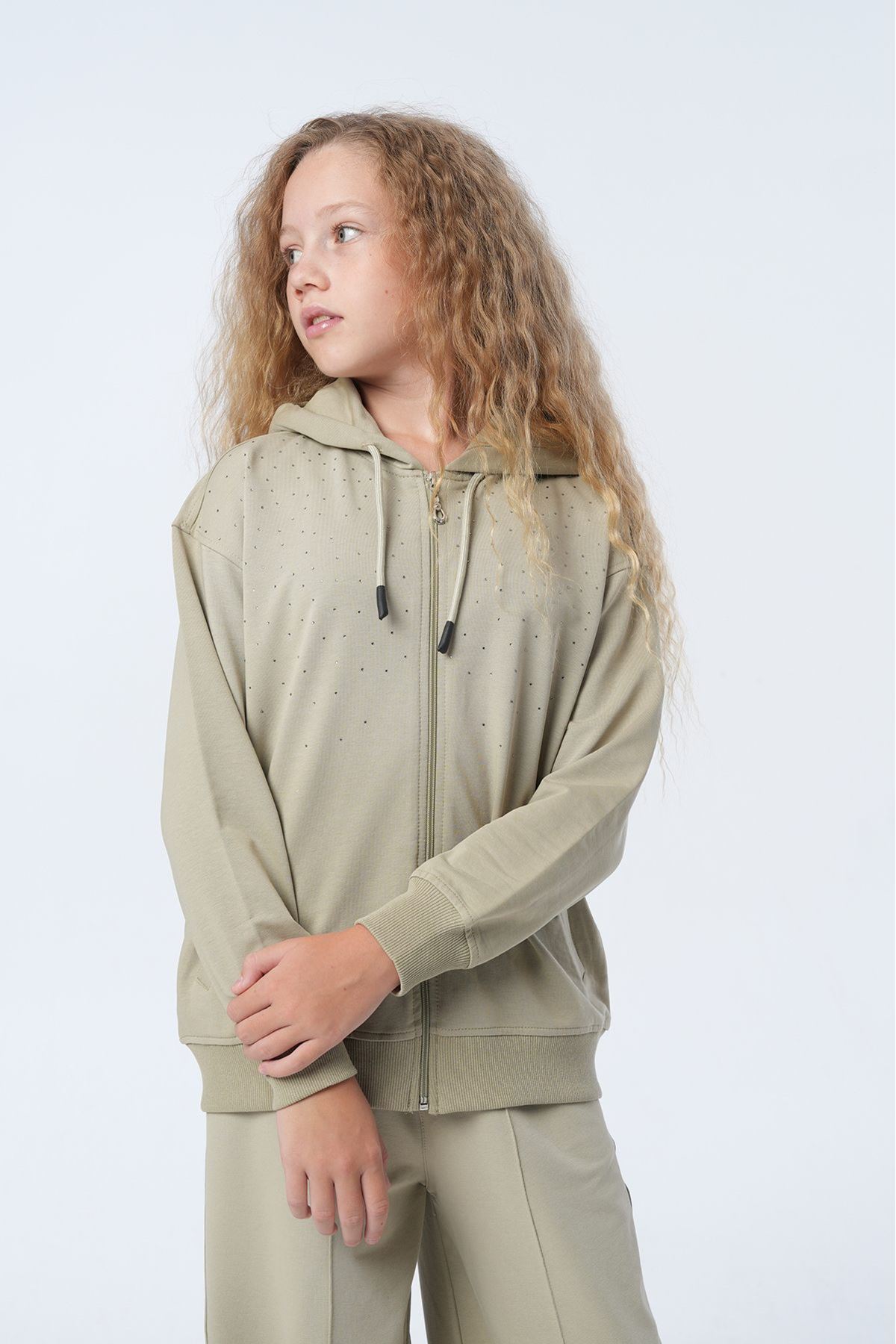 Ürün Açıklaması : Üst: Premium Kalite Havalı Taş Serpme Özel Tasarım İşçilikli Yumuşacık Pamuk Penye Kapüşonlu Fermuarlı Tasarım Hırka Alt: Belden Lastikli Havalı Kalıp Şerit Dikim Detaylı Yumuşacık Pamuk Penye Pantolon